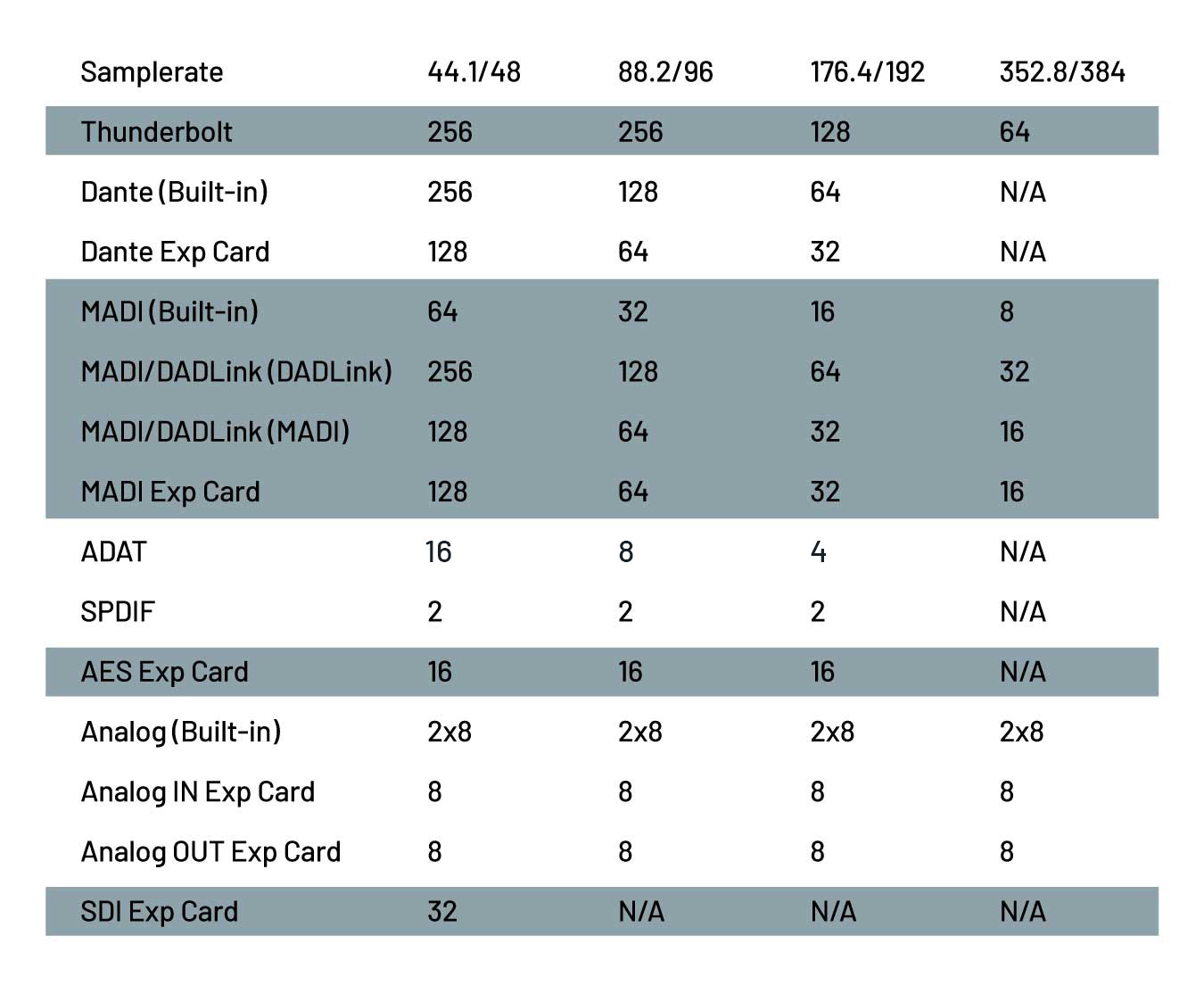 - MADI I/O (64 channels at 48 kHz)